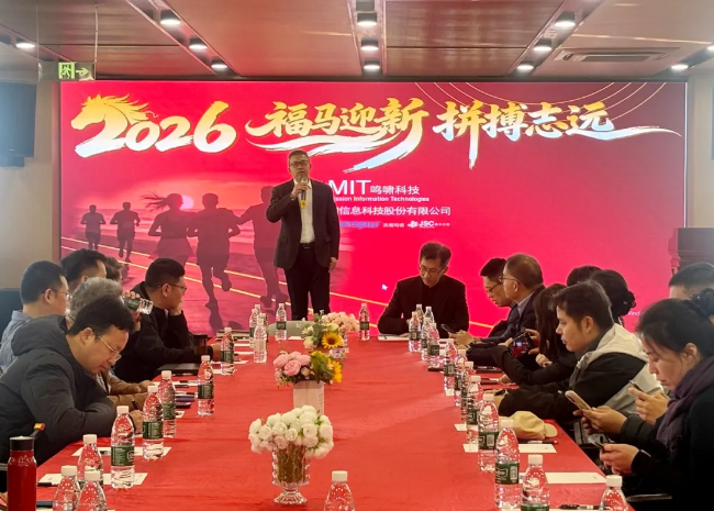 会议伊始,鸣啸科技总经理发表讲话。他全面阐述了公司年度战略的落地成效,系统梳理了核心业务的业绩亮点与发展短板,并对2026年的整体发展规划进行了清晰部署,为公司新一年的稳健前行奠定了战略基础。